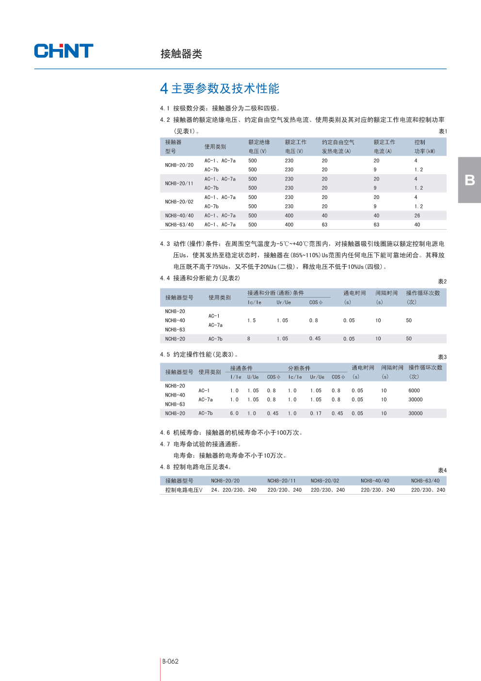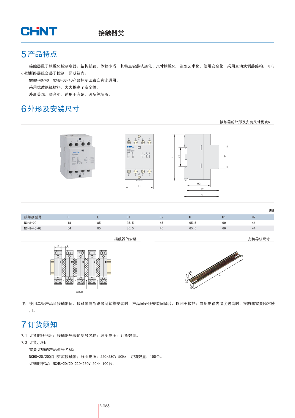 NCH8-63 40A 4P 220/230V,NCH8系列家用交流接触器,正泰集团CHINT国内一级代理